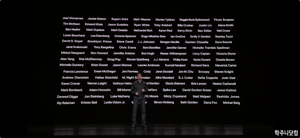 0123456이 글의 맨 밑에 이날 진행된 애플 스페셜 이벤트의 영상을 올려둘 것인데 보면 애플 스페셜 이벤트의 각 프로그램들 중에서 가장 많은 시간을 할애한 것이 바로 이 애플TV+에 대한 내용이다. 특히 애플TV+에서 선보일 각종 프로그램에 참여하는 감독, 배우들이 나와서 자신들의 프로그램에 대해서 설명하는 시간이 있었는데 꽤 길었다.