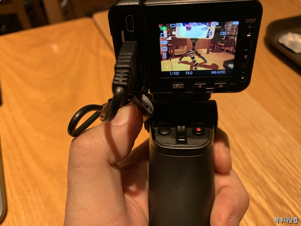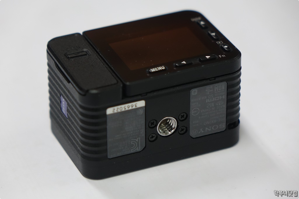 하지만 밑면을 보는 순간 다행이 3.5mm 나사 포트가 보이는 것을 확인했고 확장을 위해 별도의 악세서리가 그렇게 많이 필요하지는 않겠구나 하는 생각이 들었다. 참고로 RX0도 3.5mm 나사 포트가 존재한다. 결국 RX0와 비교해봤을 때 밑면의 디자인도 동일하다는 얘기다. 다만 내가 사용하는 오즈모 포켓과 비교했을 때 그나마 이 녀석이 확장성이 훨씬 넓다는 것이 좋다는 생각이 들었을 뿐이다.