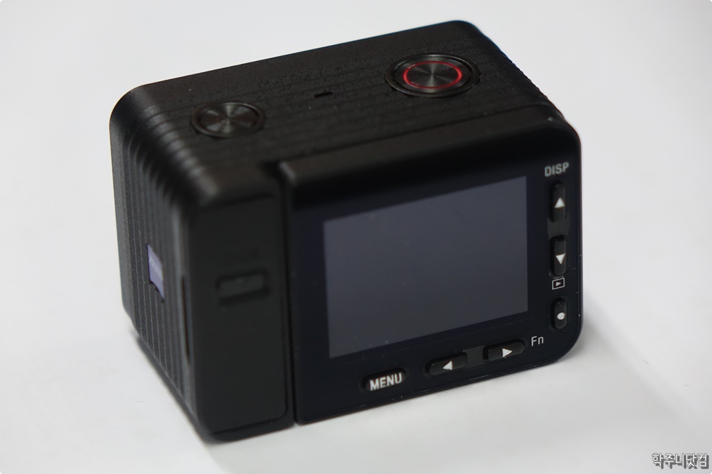 RX0 II 후면 모습 RX0 II의 뒷면도 어떤 면에서 보면 기존 모델인 RX0와 비슷하다. 화면도 1인치 조금 넘는 디스플레이이고 터치가 지원이 안되며 디스플레이 버튼 2개에 펑션 버튼, 좌우 버튼과 메뉴 버튼이 있는 것은 기존 RX0와 동일하다. 외부 포트를 꽂을 수 있게 캡으로 닫혀있으며 여는 방식도 동일하다. 이렇게만 보면 기존 RX0와 다른 점이 하나도 없어 보인다. 하지만 RX0 II만이 갖고 있는 특징이 있으니 그것은 밑에서 설명하도록 하자.