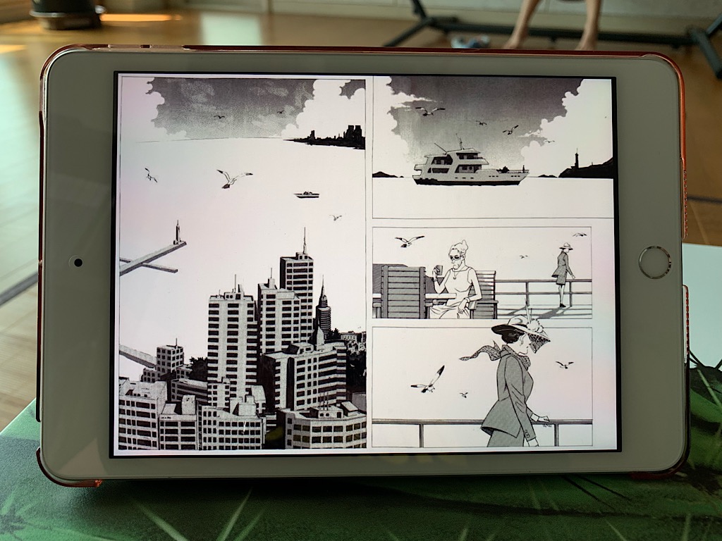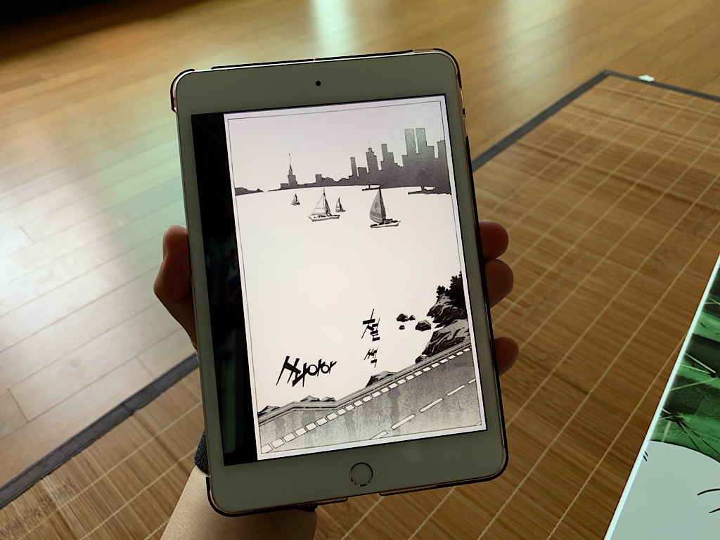 세로 모드로 만화책을 보는 모습 내 경우 AirComix라는 앱을 이용하여 만화책을 ZIP 파일로 압축하여 미니 5에 저장하고 그것으로 만화를 본다. AirComix는 오프라인 뿐만이 아니라 온라인도 지원해주기는 하는데 내 경우에는 오프라인이 편해서 만화책 몇권을 ZIP 파일로 만들어서 iTunes를 이용하여 미니 5에 저장해두고 본다. 일단 위의 모습은 세로 모드로 만화책을 보는 것인데 한장씩 저렇게 보여준다. 위의 모습은 아이폰 XS Max 등의 스마트폰에서 볼 때도 저렇게 세로 모드로 한장씩 보는데 나쁘지는 않다.