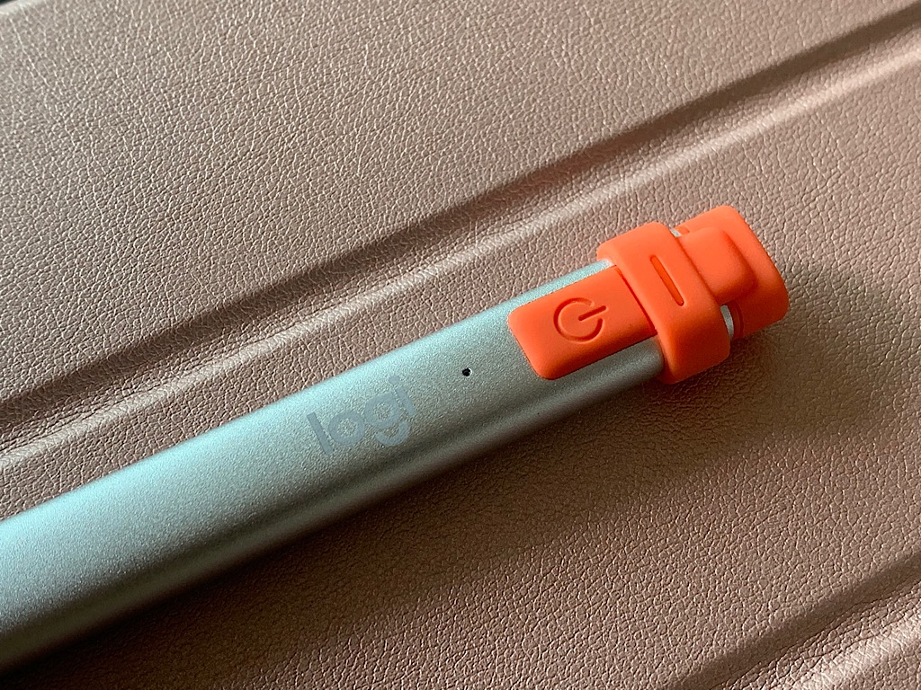 로지텍 크레용의 후면(?) 모습 앞서 크레용이 필기 위주의 애들을 위한 애플 팬슬의 대체제라고 했는데 애들을 위한 제품인지 몰라도 디자인이 참으로 유아틱(?)하다. 하지만 뭐 내가 쓰는데는 그닥 문제가 안될 듯 싶다(내가 생각보다 이런 유치한 색상이나 디자인을 좋아한다 ㅋㅋ). 둥그스름한 애플 팬슬 1세대에 비해 넓적한 디자인을 지니고 있다. 이런 디자인 때문에 그립감에서 살짝 차이가 나는데 애플 팬슬은 둥근 연필을 잡는 듯한 느낌이라면 크레용은 연필아니 볼펜을 잡는 느낌보다는 살짝 이질적인 느낌을 더 받는다. 그래도 익숙해지니 그것도 문제는 안된다.