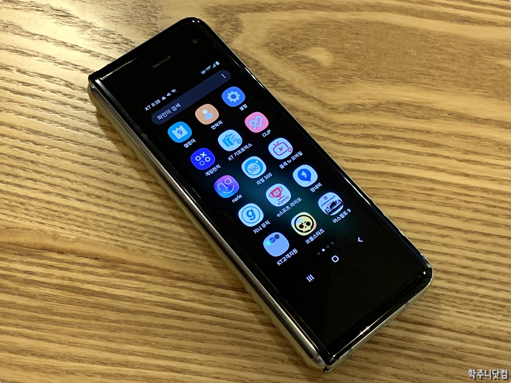 갤럭시 폴드 커버 디스플레이의 앱 박스 화면 다만 갤럭시 폴드가 펼쳤을 때가 메인이다보니 접었을 때 상당히 기다란 모양이 되는데 4.6인치의 디스플레이가 접혔을 때의 전체 크기를 다 커버하지 못하기 떄문에 위, 아래의 레터 박스가 상당히 많이 보이게 된다. 그냥 위, 아래로 기다란 디스플레이를 탑재해줬으면 어땠을까 하는 생각도 들었다. 갤럭시 폴드라면 아마도 5.2인치 정도에 720 x 2300 정도의 해상도가 나오지 않을까 싶기도 하고 말이다. 그랬다면 훨씬 좋지 않았을까 하는 생각을 해본다.