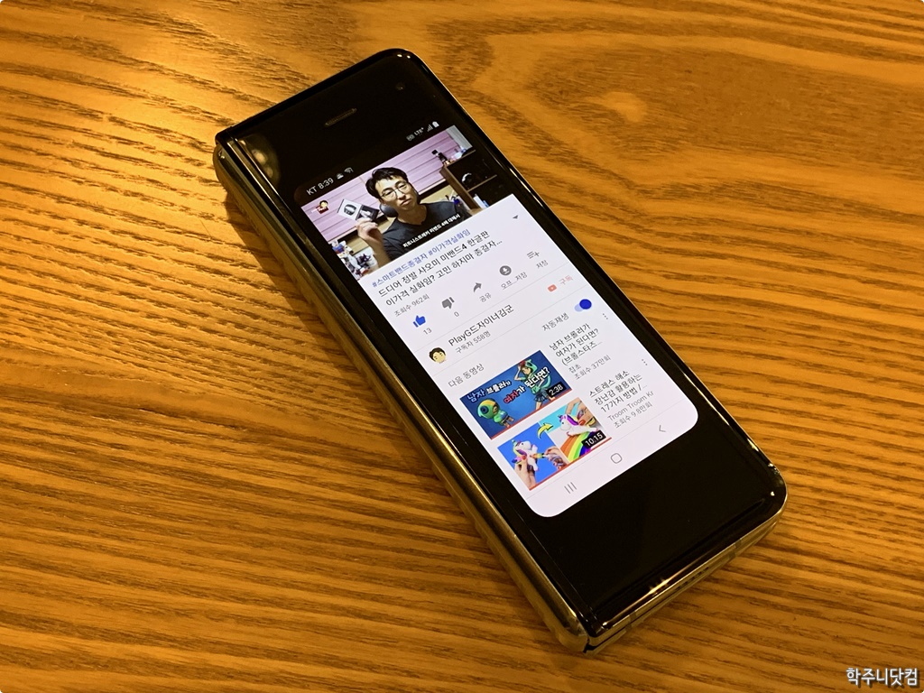 커버 디스플레이에서 유튜브 전체 화면 모습 커버 디스플레이로 유튜브에서 드자이너 김군님의 영상을 띄워봤다. 참고로 이 갤럭시 폴드는 드자이너 김군님이 리뷰용으로 받은 단말기였기에 이 분의 영상을 띄워본다. 드자이너 김군님의 유튜브에 좋은 영상들도 많으니 가서 보고 구독해주길 바란다(참고로 제 유튜브도 있으니 함께 좋아요와 구독을.. ^^);