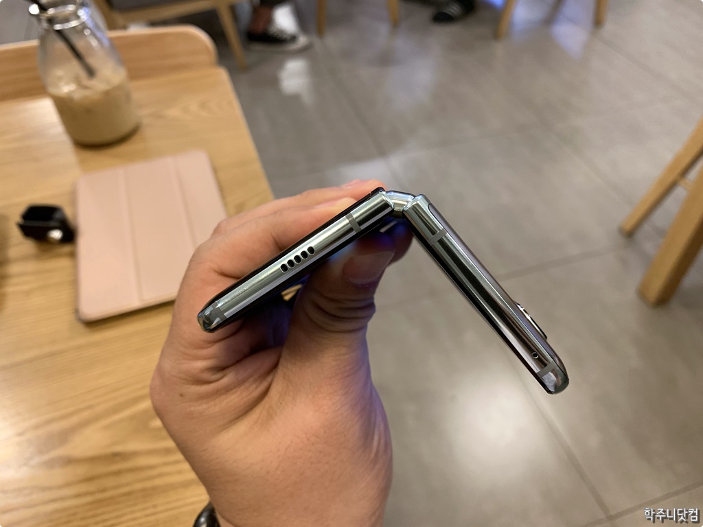 갤럭시 폴드와 같은 폴더블 스마트폰의 핵심은 역시나 접히는 부분과 그 부분을 지탱해주는 힌지가 아닐가 싶다. 접힐 때의 모습과 그 때의 힌지의 모습을 가볍게(?) 살펴보자.