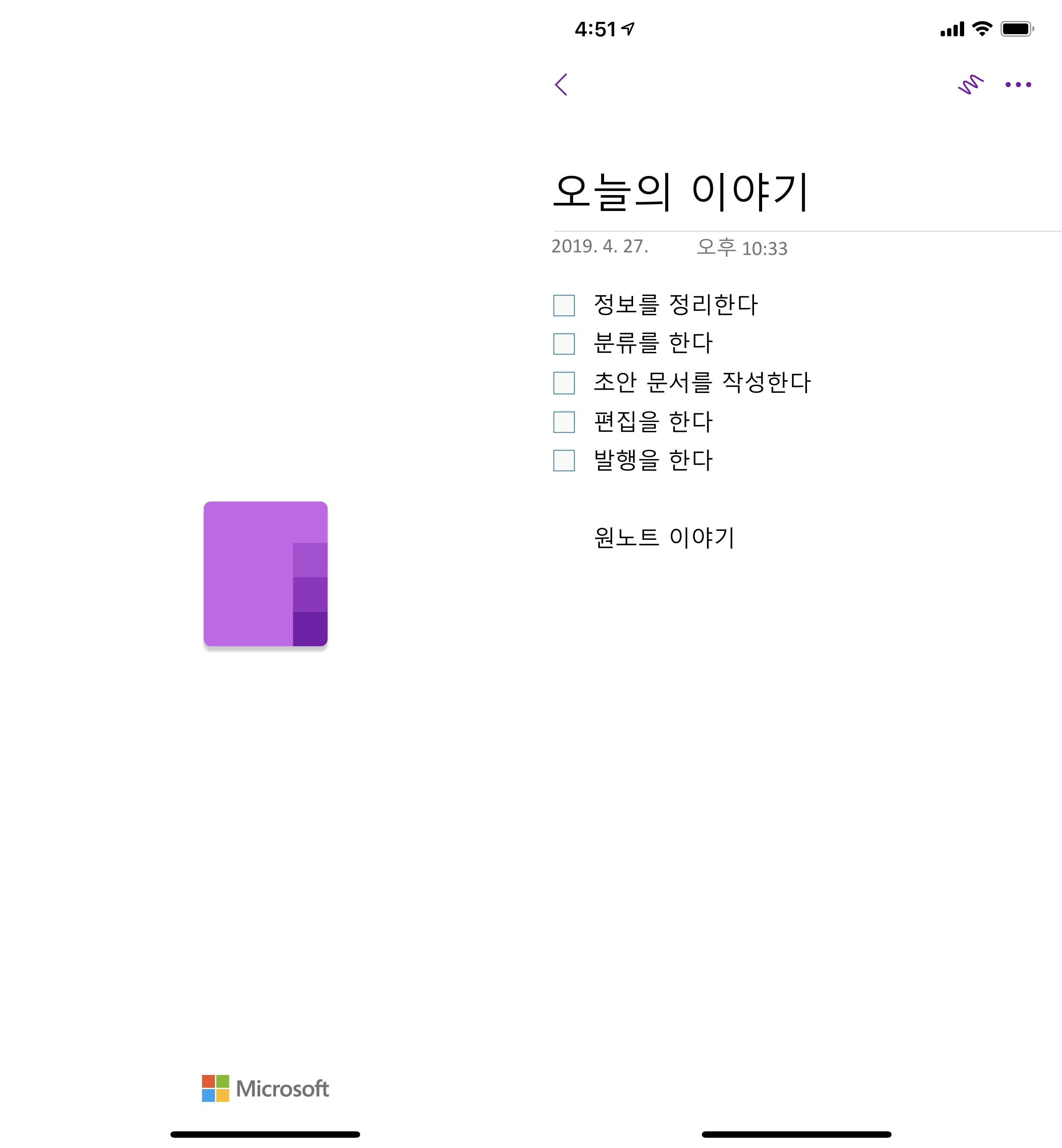 많은 사람들이 어떤 내용을 기록하기 위해 다이어리를 사용합니다. 단순히 메모를 위해서 다이어리를 사용할 수 있고 또 문서의 초안을 쓰기 위해 다이어리를 사용하기도 합니다. 스마트폰에도 기본적으로 메모 어플리케이션들이 존재하며 기본 메모 어플리케이션보다 더 많은 기능을 제공하는 다양한 메모 어플리케이션, 노트 어플리케이션들이 존재합니다. 대표적인 메모 어플리케이션으로 에버노트(Evernote)가 있고 구글에서 제공하는 구글 킵(Google Keep)이 있습니다. 네이버에서도 네이버 메모라는 서비스를 제공하고 있습니다. MS 역시 원노트(OneNote)라는 이름의 메모 앱이 존재합니다. 이에 MS의 원노트를 소개할까 합니다.