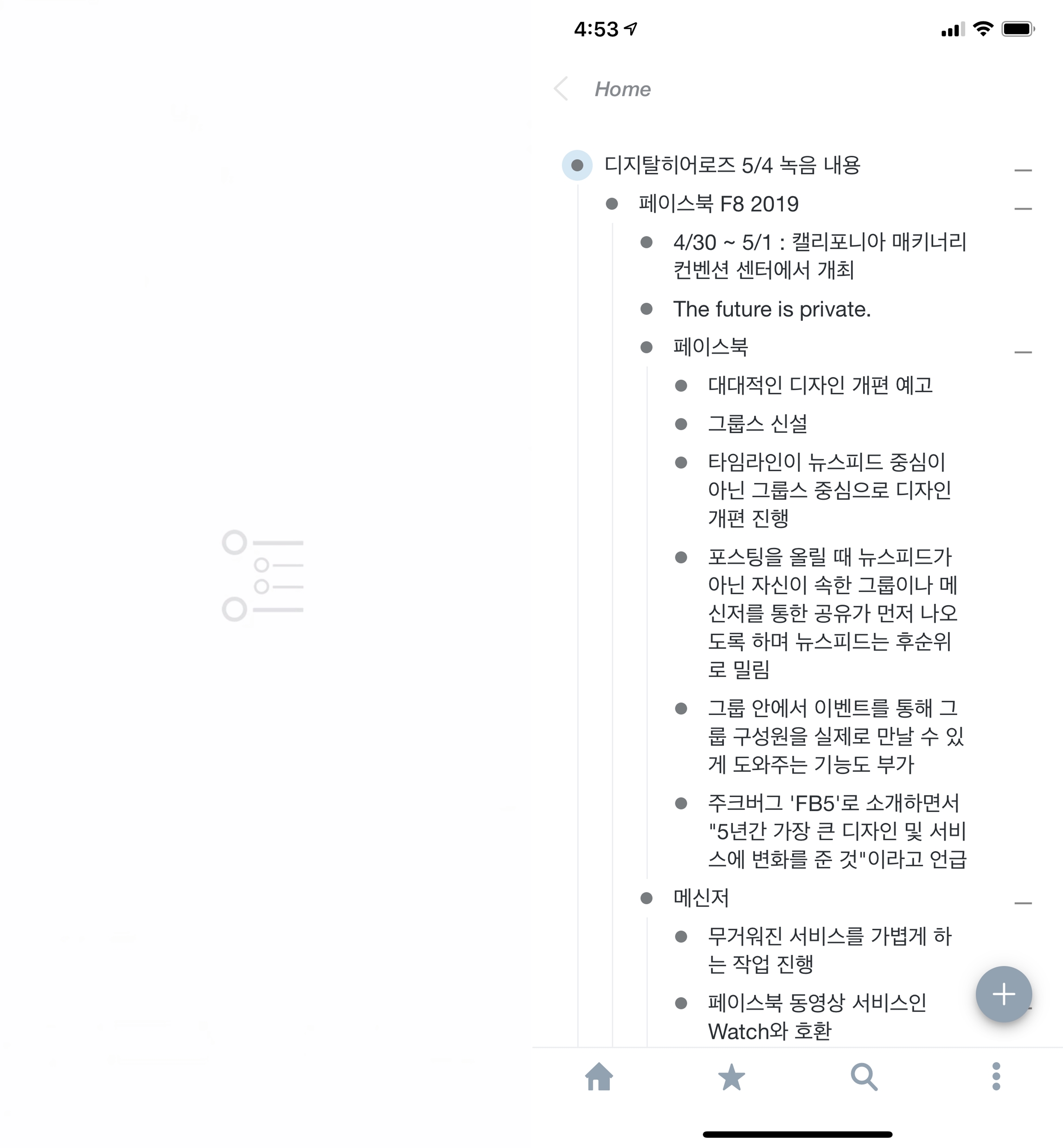 워크플로이는 단순하면서도 강력합니다. 기본적으로 아웃라이너 어플리케이션들은 어떤 아이템(텍스트, 혹은 그림 등)를 만들고 그 아래에 종속되는 하위 아이템를 만들 수 있게 해줍니다. 그리고 상위 아이템에 묶어서 보여주며 관리를 합니다. 해당 상위 아이템만 보게 할 수 있고 상위 아이템에 해당하는 하위 아이템들만 별도로 보여주게도 가능합니다. 워크플로이는 이런 기본적인 아웃라이너들의 기능을 모두 제공합니다. 다만 워크플로이의 아이템은 텍스트만 사용할 수 있다는 점은 아쉬운 부분입니다.