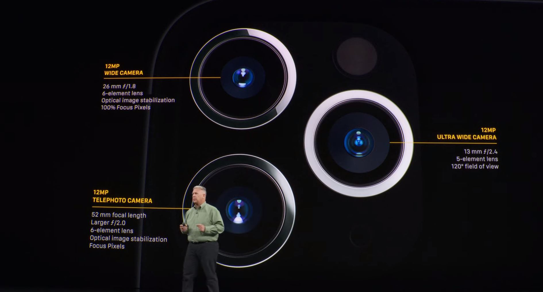 맨 처음에 저런 3각형 구도의 렌즈 배치를 봤을 때 2개의 렌즈는 화각 렌즈, 1개의 렌즈는 심도(TOE) 렌즈라고 생각을 했다. 그래서 좀 더 확실하게 거리 측정을 해서 심도 부분을 더 깊이있게 표현하도록 만들어주지 않을까 하는 예상을 했는데 어김없이 깨버렸다. 아이폰 11 프로 시리즈의 저 3개의 렌즈는 우리가 익히 예상할 수 있는 3개의 화각, 즉 광각, 일반각, 망원의 화각을 지닌 렌즈다. 애플은 초광각, 광각, 망원 렌즈라고 하는데 아이폰 11과 비교하면 망원 렌즈가 추가된 것이라고 보면 된다.