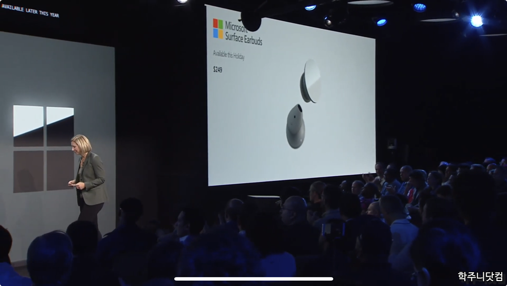 이번에 선보인 음향기기는 다름아닌 서피스 이어버즈라는 완전 무선 이어폰이다. 버즈(Buds)라는 이름의 완전 무선 이어폰들이 많이 나왔는데(삼성의 갤럭시 버즈, 아마존의 에코 버즈 등) MS도 서피스 제품군에 버즈라는 이름을 붙여서 서피스 버즈라는 이름으로 완전 무선 이어폰을 선보였다. 그리고 발표할 때 애플의 에어팟에 대한 대항마로 만들었다는 것도 살짝 언급을 했었다.