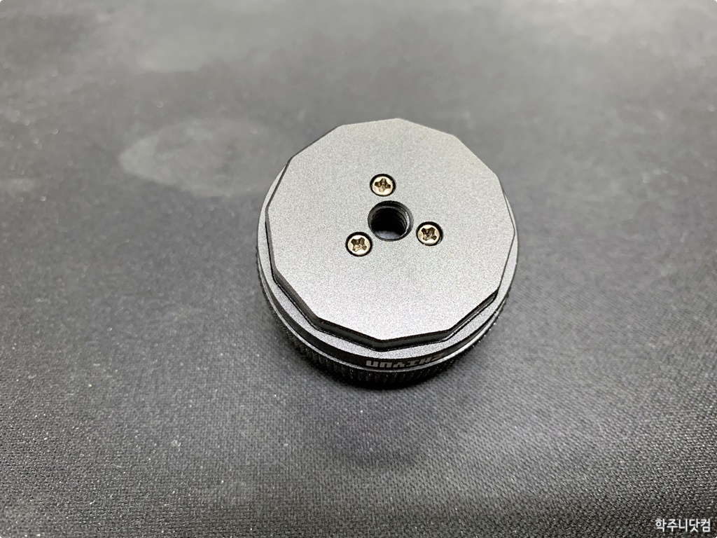 상판과 하판을 분리하면 위의 사진처럼 분리가 된다. 이 상태에서 다른 트라이포드나 짐벌 등에 트랜스마운트의 하판에 끼우면 되는 것인데 끼울 때에도 그냥 끼우는 것이 아닌 하판의 원형 돌기 부분을 밑으로 내리고 끼우면 된다.