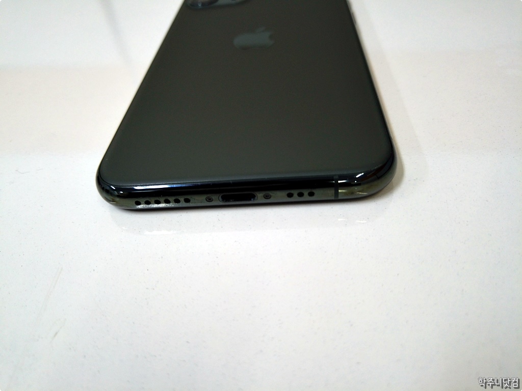 앞서 언급했지만 여전히 아이폰11프로는, 아니 아이폰11 시리즈는 라이트닝 포트를 지원한다. 아이패드 프로 3세대처럼 USB-C를 지원해도 되지 않을까 싶었는데 애플은 스마트폰 카테고리는 계속 라이트닝 케이블로 가려고 하는 듯 싶다. USB-C 포트를 제공해야 좀 더 많은 외부 악세서리를 연결해서 쓸 수 있는데 그 부분은 좀 아쉽다. 당연히 3.5파이 이어잭 포트도 없다. 라이트닝 케이블로 된 이어팟을 제공하니 그것을 쓰거나 아니면 블루투스 무선 이어폰을 사용해야 한다. 뭐 이전 모델도 그랬으니 이제는 그러려니 한다.