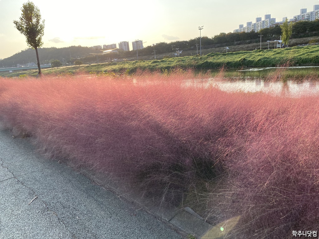 위의 사진은 안양천에 있는 핑크뮬리의 모습이다. 솔직히 아이폰11 시리즈에서도 고스트 현상은 잡지 못한 듯 싶다. 위의 사진 밑에 보면 녹색 원이 보이는데 고스트 현상이다. 아무리 스마트폰 카메라의 성능이 좋아졌다고 하더라도 센서의 크기가 작기 때문에 고스트 현상은 어쩔 수 없이 생기는 듯 싶다. 하지만 고스트 현상이 아니면 나름 꽤 고퀄리티의 사진을 얻을 수 있다. 여기서는 안보여줬지만 실제로 확대해서 보면 저 핑크뮬리의 각 잎들의 디테일이 살아있는 것을 볼 수 있다.