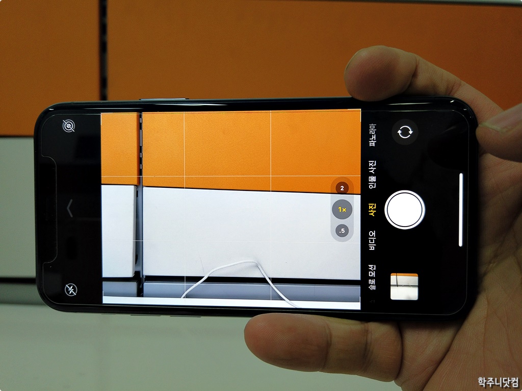 드디어 아이폰의 카메라 앱에서 3가지의 화각을 선택할 수 있게 되었다. 이전에 사용하던 아이폰XS맥스는 광각과 망원만 제공되었기 때문에 1x, 2x만 선택할 수 있었으나 위에서 보면 알 수 있듯 .5가 생겼다. 초광각이 생긴 것이다. 그리고 광각 역시 화각이 이전 아이폰XS 시리즈에서 제공하는 광각보다 약간 더 넓어진 느낌이다.