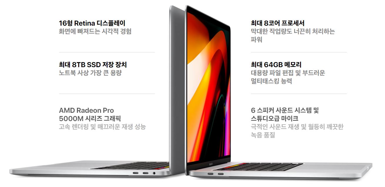 앞서 언급했듯 애플이 약 빨고 만들었다고 했는데 지금까지 나온 맥북 시리즈들 중에서 최고 성능을 지닌 녀석이다. 최고 수준의 CPU에 메모리 역시 64GB까지 제공하고 저장공간은 무려 8TB로 SSD로 제공을 해준다. 비디오 메모리 8GB를 탑재한 그래픽 카드 역시 제공을 해준다.
