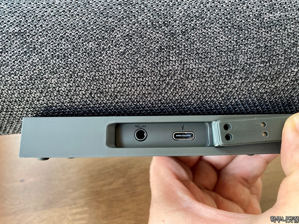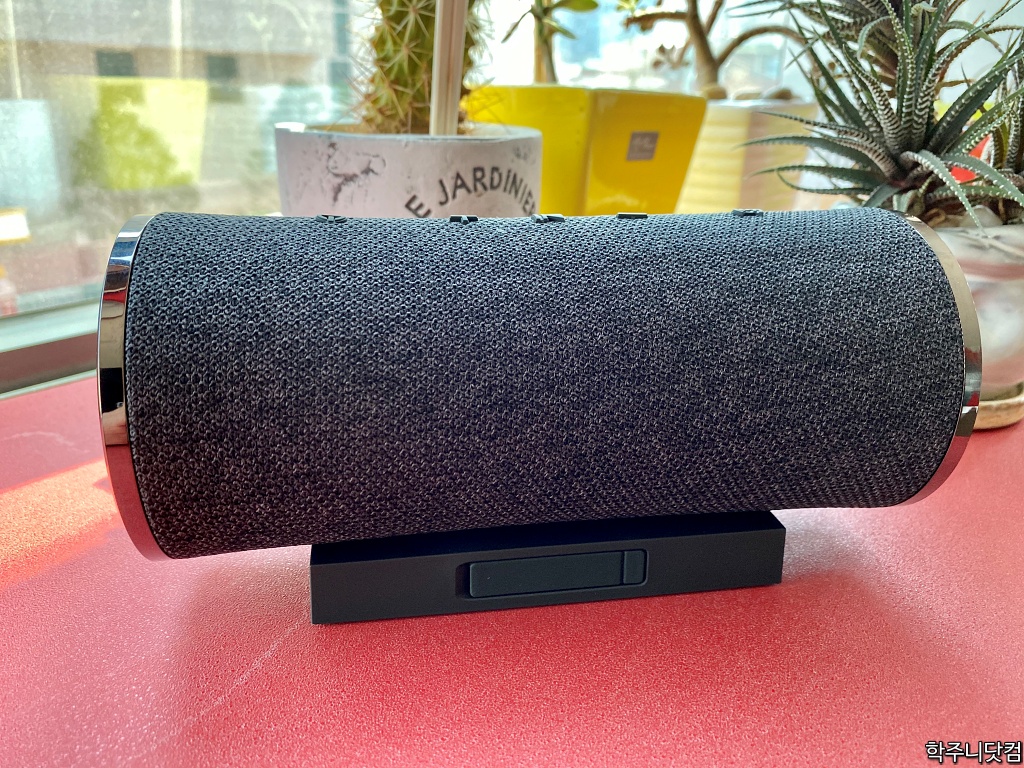 밑에서 언급하겠지만 양쪽 끝부분은 메탈 재질로 마감되어 있으며 우퍼 2개가 양쪽으로 탑재되어 있다.