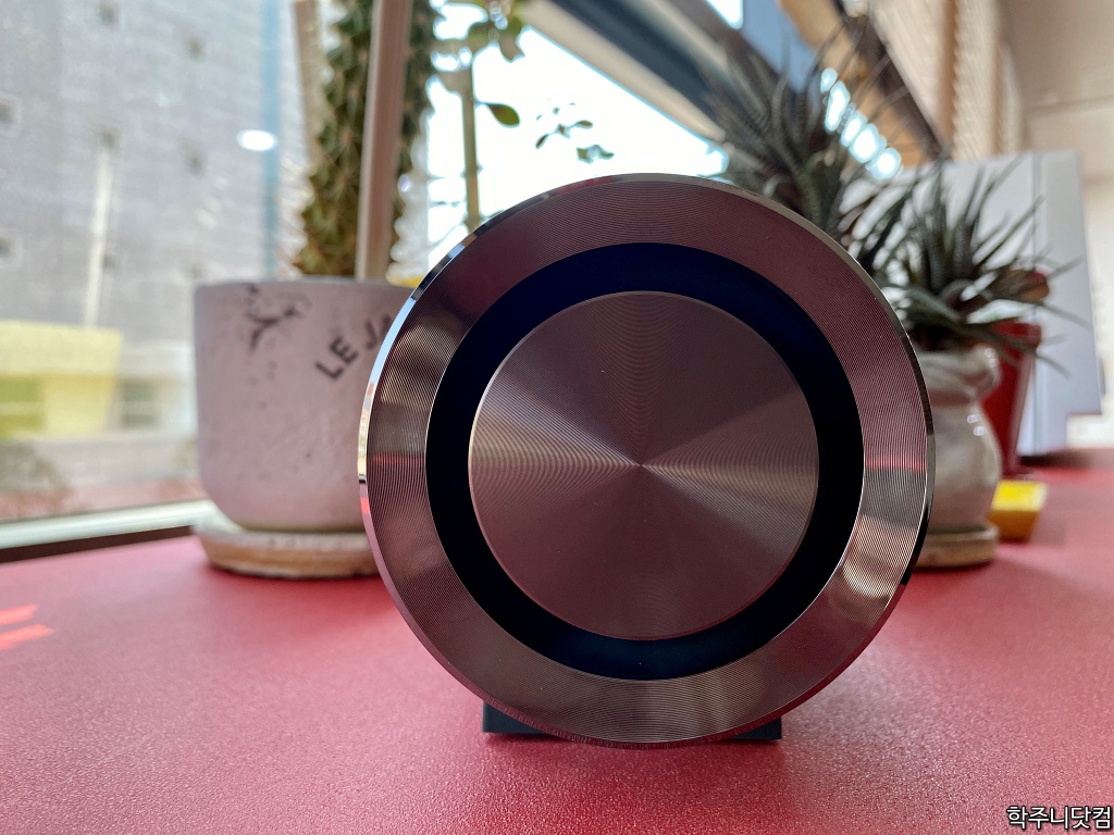 펨티오의 우퍼 부분 펨티오의 양쪽 끝은 메탈 재질로 되어 있는데 여기에 우퍼(듀얼 패시브 라디에이터)가 탑재되어 있다. 펨티오의 경우 원통형 본체에 사운드 유닛이 존재하며 양쪽 끝의 우퍼를 통해서 저음을 출력한다. 참고로 펨티오는 48mm 드라이버로 20W의 선명한 사운드를 출력한다고 하는데 실제로 들어보니 출력이 생각보다 커서 만족스러웠다. 사운드에 관련해서는 위의 영상 후반부에 사운드 테스트가 있으니 참고하길 바란다.