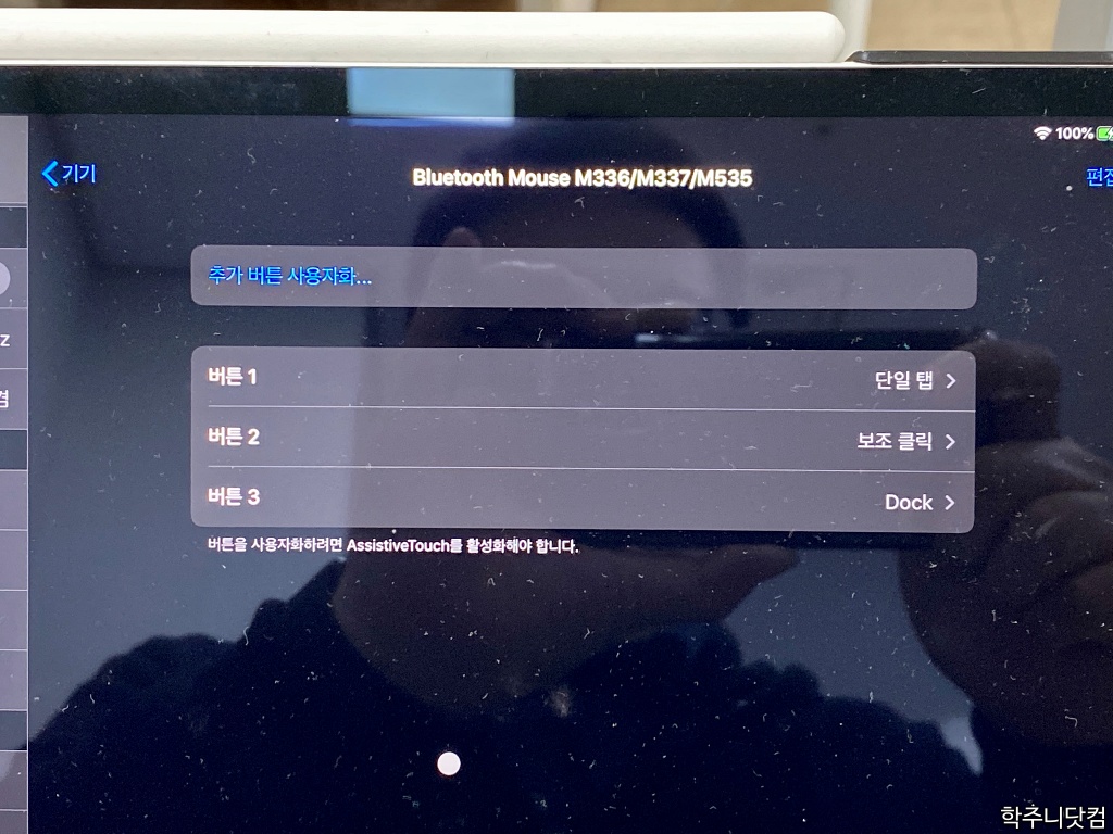 해당 기기를 누르려면 버튼에 대한 기능을 선택할 수 있다. 앞서 언급했듯 버튼 동작을 제대로 하려면 어시스티브터치를 활성화해야 가능하니 가급적이면 어시스티브터치를 활성화하자. 물론 어시스티브터치의 아이콘도 안보이게 하는 방법이 있다(그 방법은 나중에 ^^).