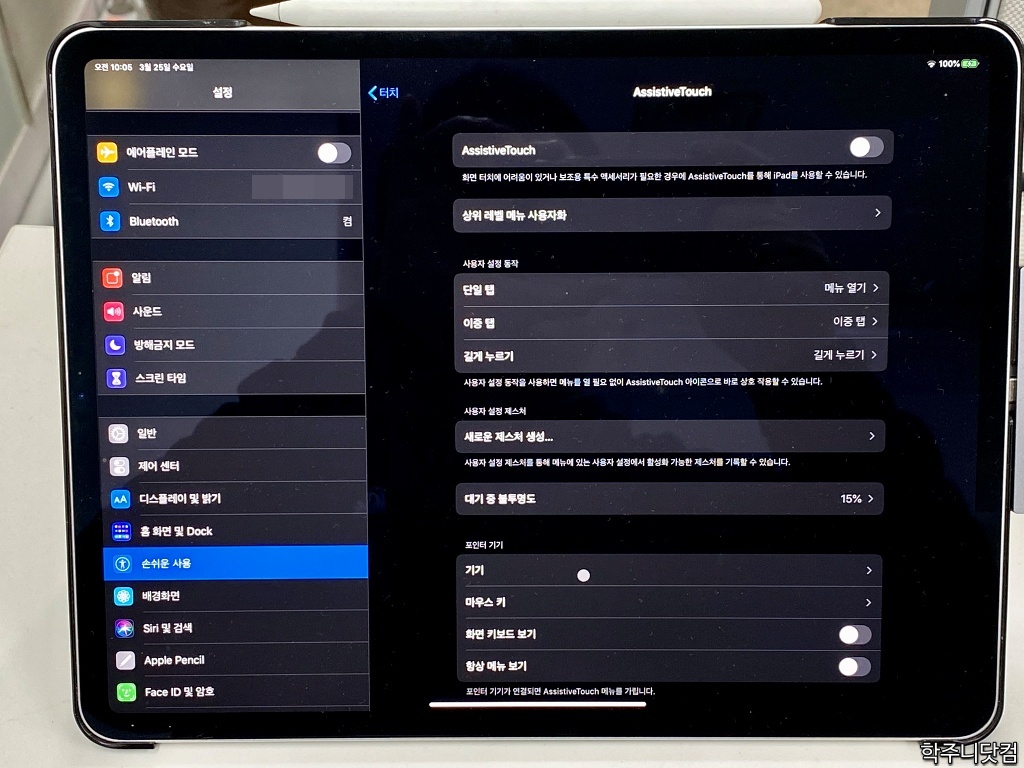 iPadOS 13.0 버전부터 마우스는 지원되기 시작했다. 그리고 마우스를 사용하기 위해서는 손쉬운 사용에서 터치 -> 어시스던트 터치 부분으로 들어가서 설정을 해줘야 했다. 엄밀히 따져서 iPadOS 13.4 역시 비슷하기는 하다. 그래서 손쉬운 사용에서는 어떤 부분이 바뀌었는지 살펴보자.