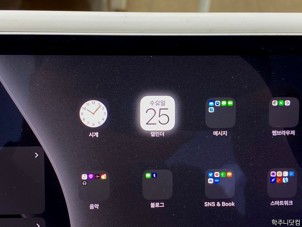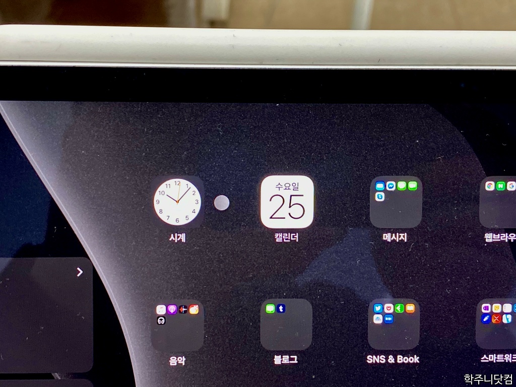 그런데 마우스 포인터를 아이콘 위에 두면 위와 같이 해당 아이콘을 강조하는 식으로 변경이 된다. 좀 더 확실하게 클릭을 해서 선택할 수 있게 하겠다는 의미로 보인다. 어차피 아직까지 iPadOS에서의 마우스 포인터 기능은 터치를 기반으로 움직이는 아이패드의 터치 보조장치 수준이다. 물론 기능이 좀 더 많아지기는 했지만 말이다. 그렇기 때문에 저렇게 함으로 터치하는 것을 대신하는 동작이 더 명확하게 보이는 것이 좋을 듯 싶기도 하다.