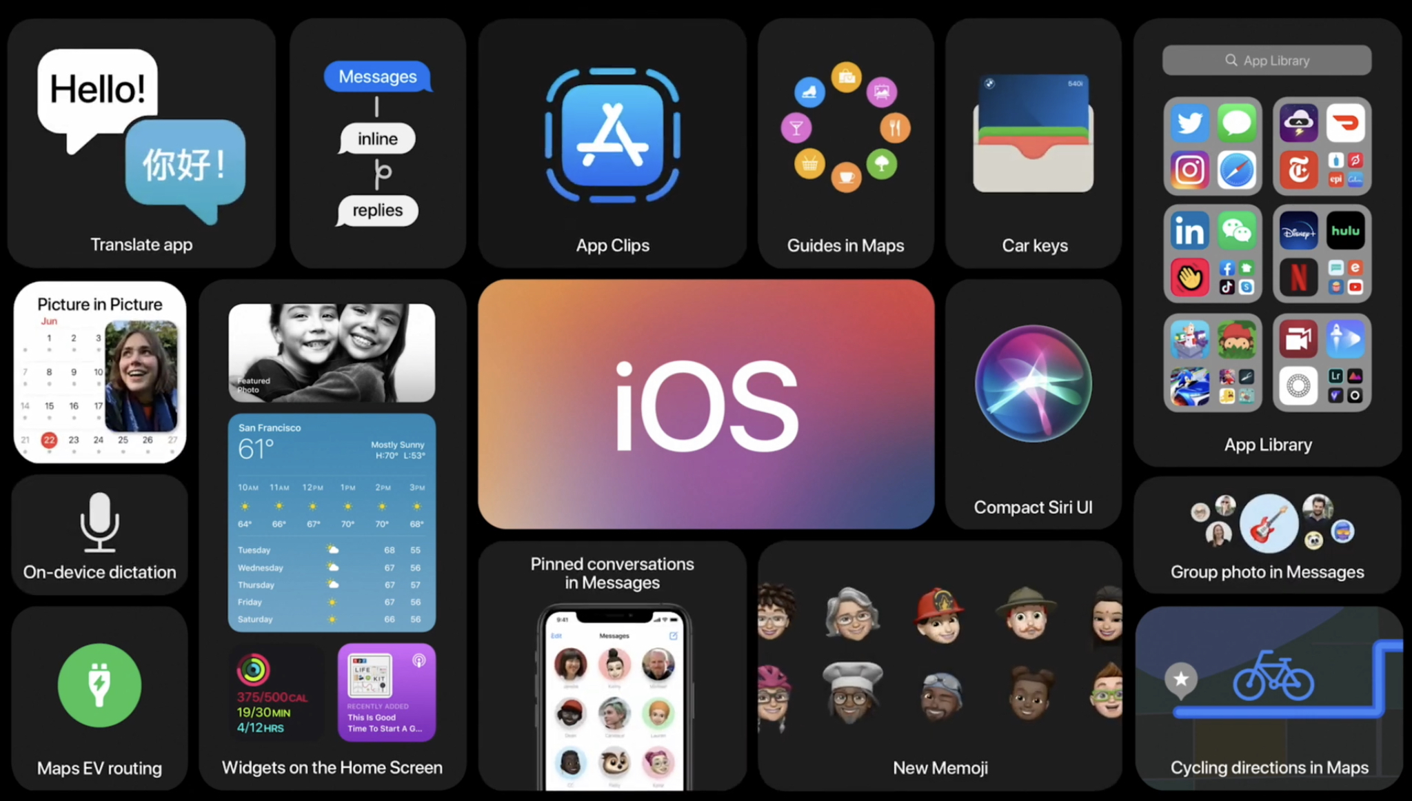 앞서 언급했듯 iOS 14는 작년에 공개되었던 iOS 13의 후속 버전이다. 그리고 고맙게도 iOS 14를 적용할 수 있는 아이폰 모델은 무려 아이폰 6S부터이다. 아이폰 6S, 아이폰 SE(이번에 발표된 아이폰 SE가 아닌 이전에 발표된 모델)부터 iOS 14를 지원한다. iOS 13 대비 어떤 새로운 기능이 생겼는지 20개 정도로 추려서 얘기를 해볼까 한다.
