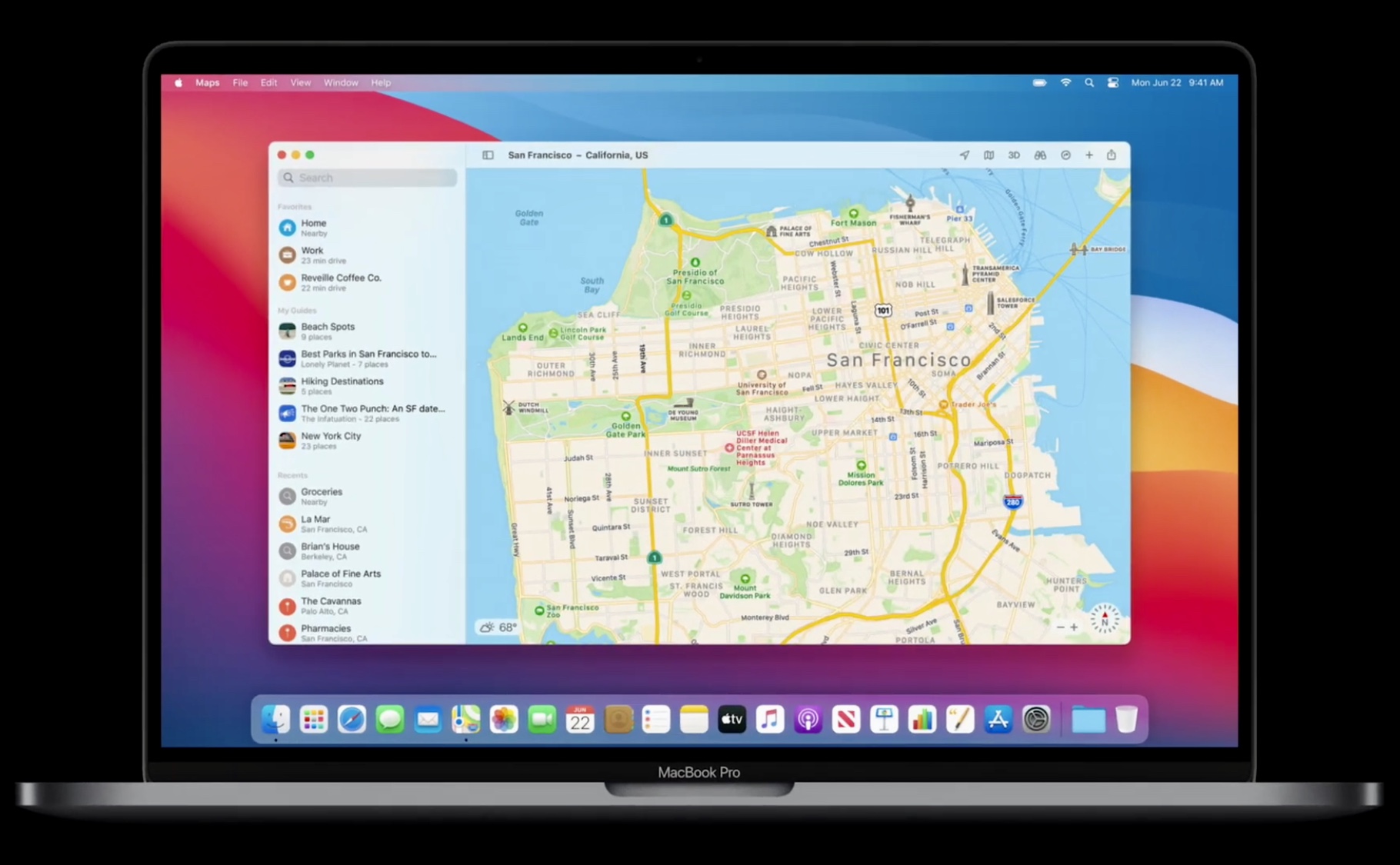 이번 macOS Big Sur에는 지도, 메시지, 주식, 음성 녹음. 팟캐스트, 내 디바이스 찾기, 홈 등의 앱을 맥 카탈리스트를 통해 iPadOS 14에서 제공했던 앱을 그대로 이식을 했다. 다음 포스팅인 애플 실리콘을 설명할 때 언급하겠지만 맥 카탈리스트를 통해서 만들어진 앱들은 CPU(지금의 x86, 향후의 ARM)에 상관없이 동작할 수 있게 바이너리가 만들어진다고 한다.