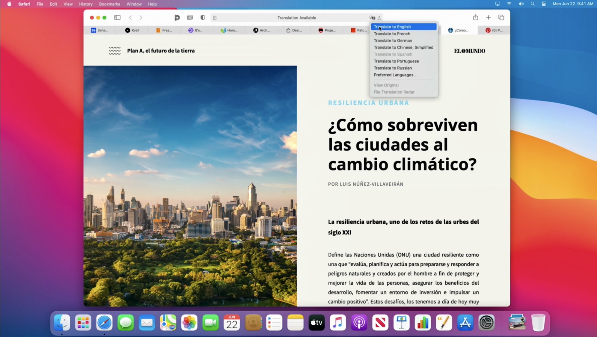 그리고 사이트 번역 기능을 제공한다. 이미 크롬에서는 구글 번역을 통해 제공했던 기능인데 애플은 사파리에 이제야 넣어준다. 그런데 내 생각에는 번역 툴은 제공해주지만 왠지 한국어 번역 기능은 없을 듯 싶다. iPadOS 14의 사파리 번역 기능에 한국어가 빠져있는데 여기도 마찬가지가 아닐까 싶다.