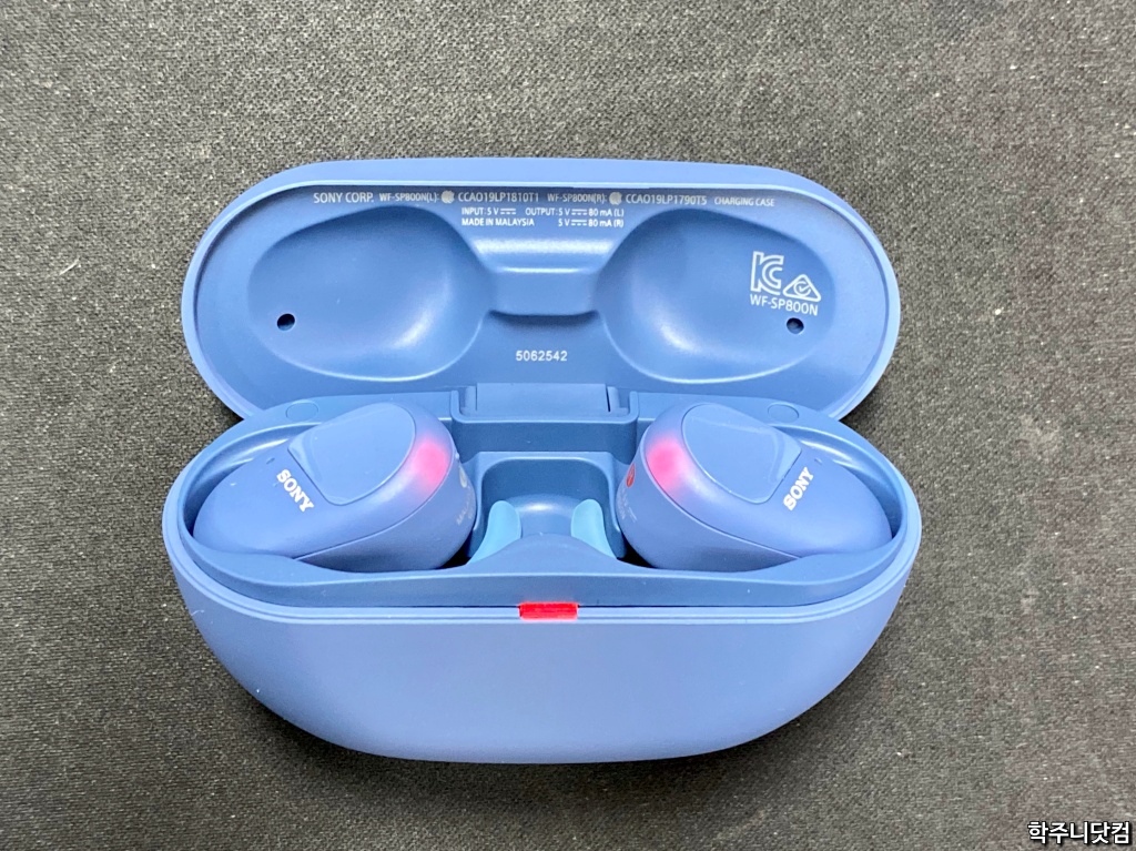 이어버드 충전 상태 WF-SP800N의 충전 케이스가 큰 이유는 위에 이어버드를 충전할 때의 모습을 보면 알 수 있다. 즉, 이어버드가 살짝 크다. 그 크기에 맞춰서 충전을 하려니 충전 케이스의 크기도 상대적으로 커지는 듯 싶다.