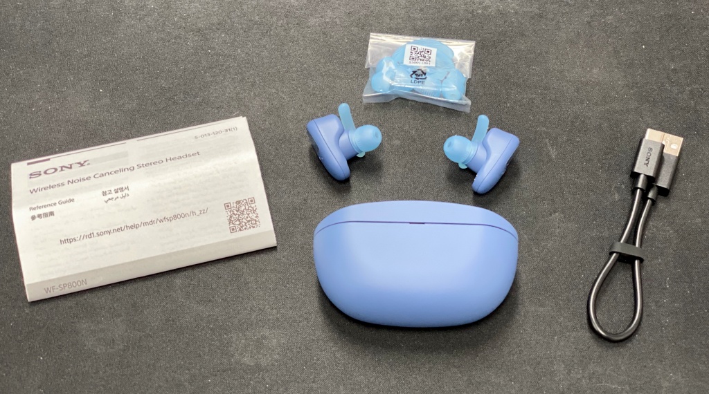 WF-SP800N 구성품 위의 사진처럼 박스 안에는 WF-SP800N의 이어버드 2개와 충전 케이스가 있으며 종이 상자 안에는 여분의 이어버드용 이어팁, USB-C 충전 케이블, 그리고 참고 설명서가 들어가 있다. 뭐 예상처럼 단촐한 구성이다.