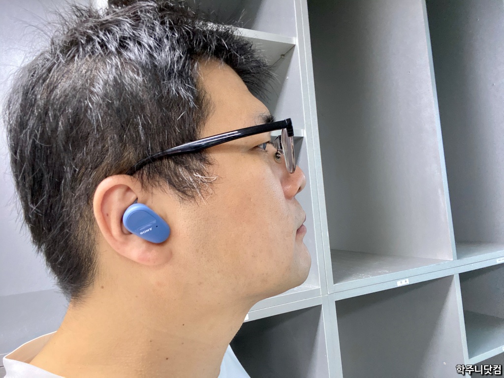실내(?)에서의 착용샷 실내에서 한번 WF-SP800N을 끼워봤다. 위와 같은 모습을 하는데 나름 잘 끼워지는 듯 싶다. 이어후크의 존재로 인해 귀에 잘 고정되는 느낌이 있다.