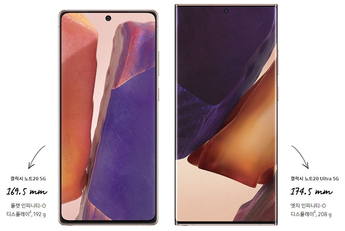 그리고 색상의 경우 갤럭시 노트 20의 경우 2가지 색상으로, 노트 20 울트라는 3개지 색상으로 나오게 된다. 삼성이 적극적으로 밀고 있는 미스틱 브론즈는 둘 다 들어가 있고, 노트 20의 경우 미스틱 그레이가, 노트 20 울트라의 경우 미스틱 실버와 미스틱 블랙이 추가적으로 제공된다.