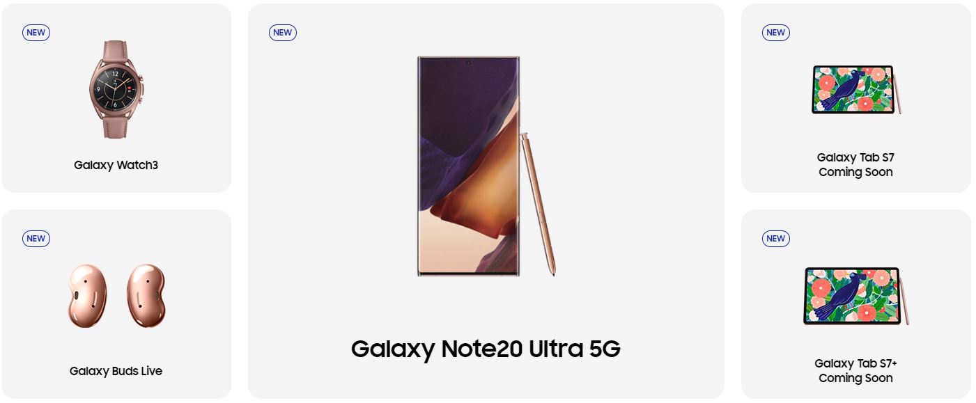 올해 첫번째 갤럭시 언팩 2020은 2월에 열렸는데 그 때는 갤럭시 S20 시리즈와 갤럭시 Z 플립이 공개되었다. 그리고 이번 갤럭시 언팩 2020 8월 행사에는 5개의 모델이 소개되었는데 갤럭시 노트 20 시리즈와 갤럭시 탭 S7 시리즈, 갤럭시 워치 3와 갤럭시 버스 라이브, 그리고 위의 사진에는 없지만 갤럭시 Z 폴드 2가 소개되었다.