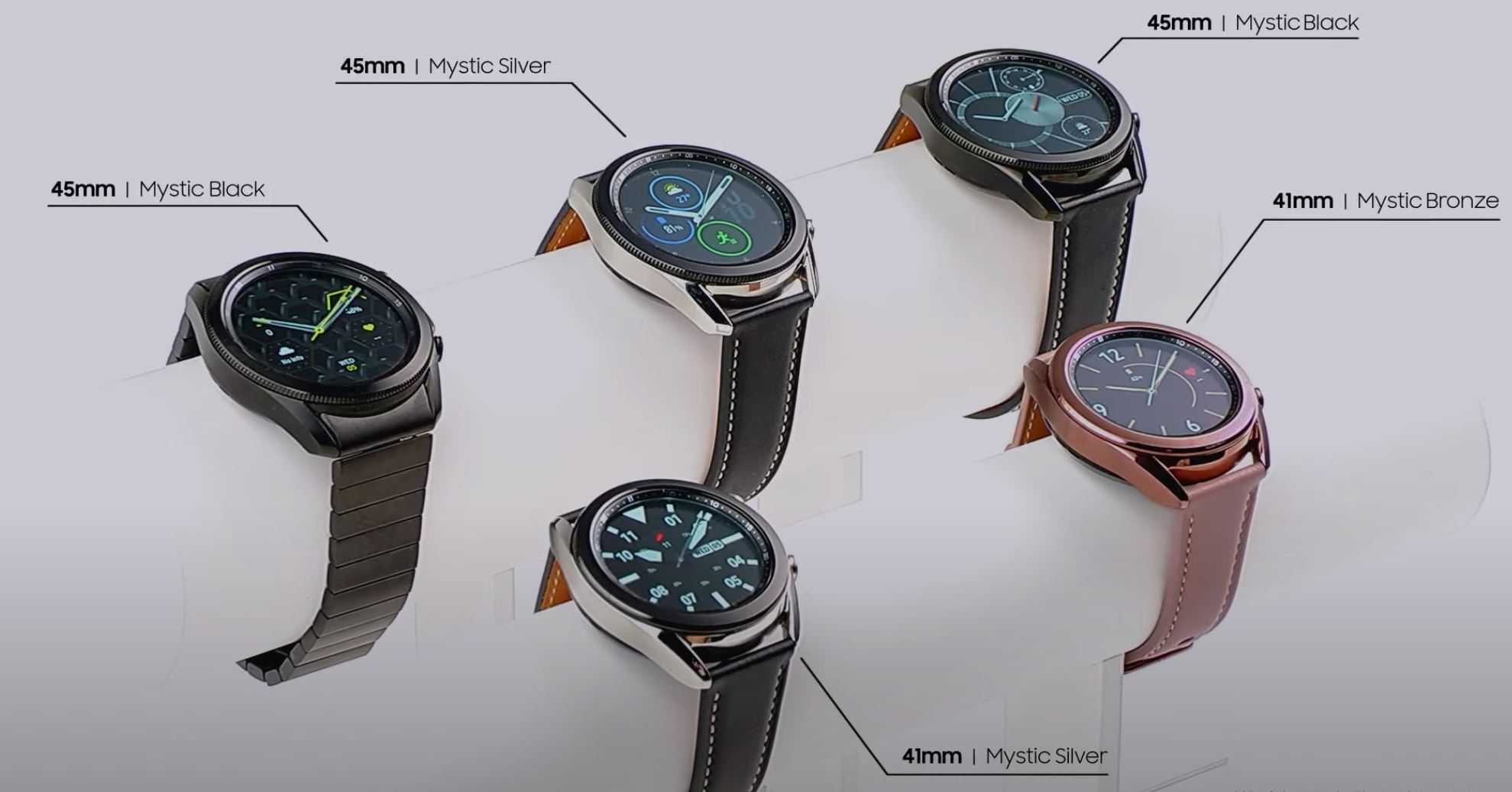 갤럭시 워치 3는 41mm와 45mm 모델이 나오며 미스틱 블랙은 45mm만, 미스틱 실버는 41, 45mm 둘 다, 미스틱 브론즈는 41mm 모델만 나온다고 한다. 그리고 미스틱 블랙 티타늄 모델이 나오는데 그것도 45mm 모델만 나온다고 한다.