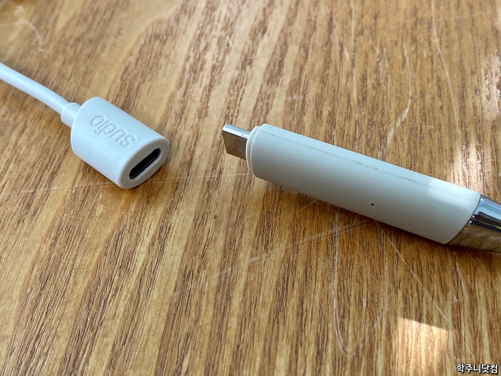 앞서 언급했던 것처럼 버튼이 있는 제어 부분은 이어버드와 분리가 된다. 이걸 분리하면 USB-C 형식의 암놈과 숫놈이 나온다.