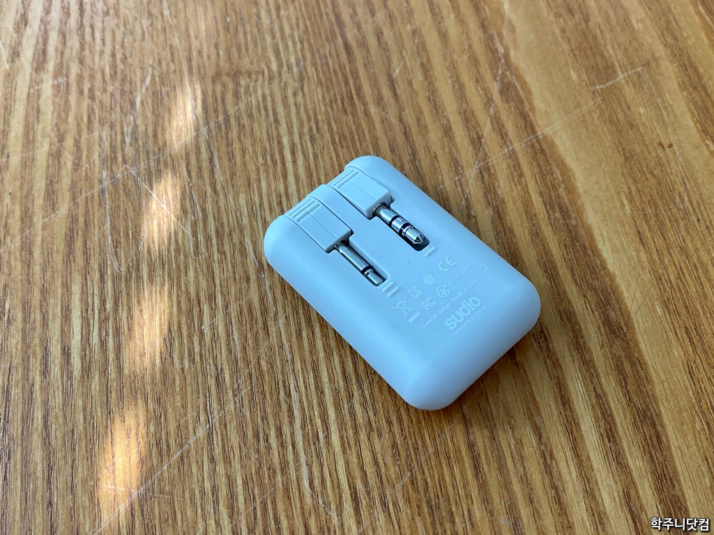 수디오 엘바에는 재미난 제품이 하나 더 들어가 있는데 다름아닌 블루투스 어뎁터이다. 정식 명칭은 블루투스 비행기용 어뎁터인데 비행기에서 사용할 수 있는 어뎁터라고 보면 된다. 그런데 밑에서도 언급하겠지만 비행기용으로만 쓰는 것이 아니라 더 다양한 용도로 쓸 수 있다는 것이 장점이다.