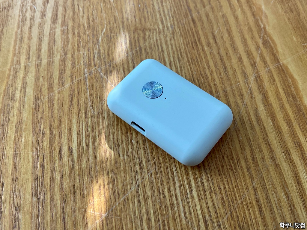 일단 디자인을 살펴보면 위에서 보는 것처럼 전면은 원형 버튼 하나만 있다. 심플하다. 버튼을 몇번 누르는가에 따라서 동작이 달라진다. 그리고 옆에 USB-C 포트가 있는데 당연히 충전용 포트다.