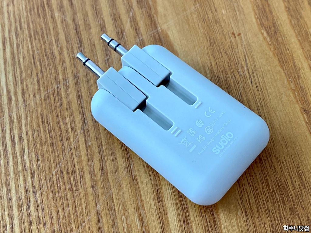 뒷면을 보면 2극 단자와 3극 단자가 수납되어 있는 것을 알 수 있다. 이걸 돌려서 쓰면 된다. 비행기에서 사용할 목적이면 둘 다 돌려서 쓰면 되고 일반 TV나 3.5파이 이어폰 포트 등에 꽂아서 쓸 생각이면 3극 단자만 돌려서 쓰면 될 듯 싶다.