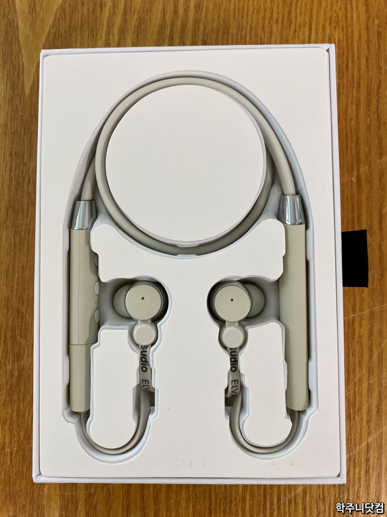 이번에 소개할 수디오의 무선 이어폰은 엘바(Elva)라는 제품이다. 앞서 언급했듯 완전 무선 이어폰은 아니고 그냥 블루투스 무선 이어폰(이어버드가 서로 연결된)이다. 이 시점에 왜 그냥 블루투스 이어폰일까 싶지만 엘바는 컨셉이 조금 다르다.