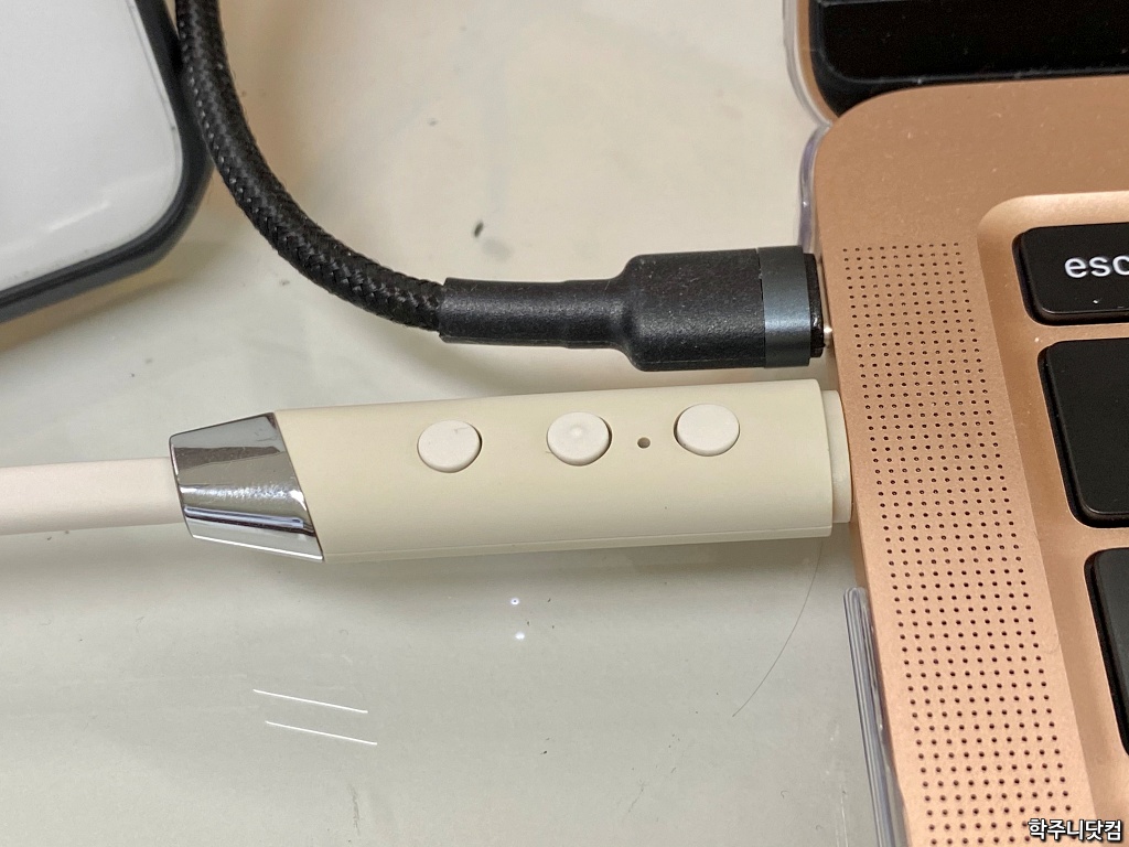 앞서 언급했던 것처럼 버튼이 있는 제어 부분은 이어버드와 분리가 된다. 이걸 분리하면 USB-C 형식의 암놈과 숫놈이 나온다.