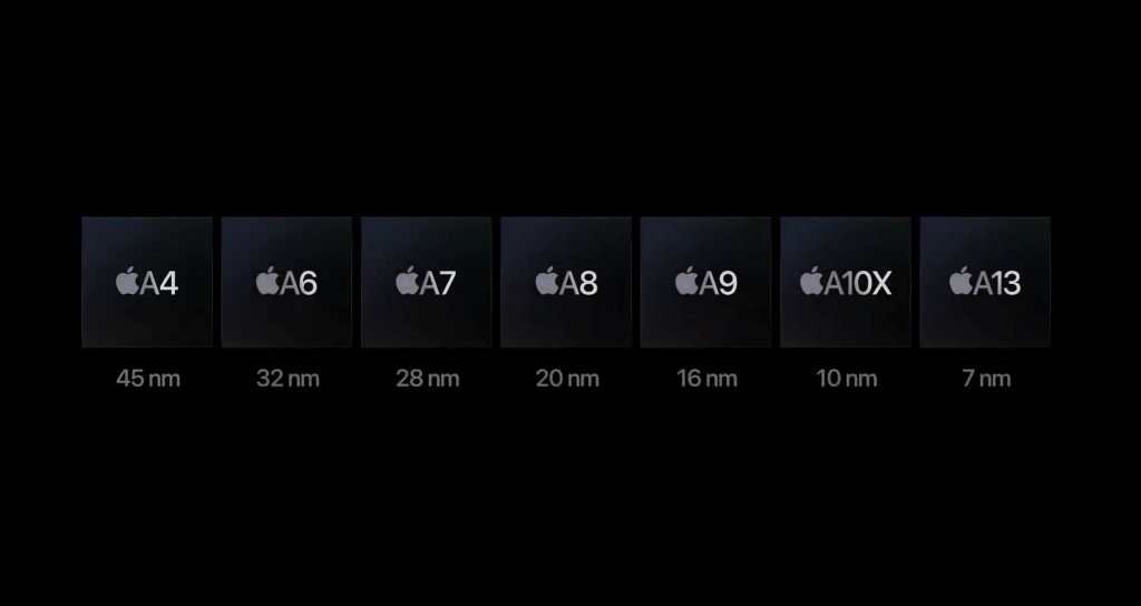일단 애플의 CPU 개발 공정을 살펴보면 A4 칩셋에서는 45 나노 공정을 이용했고 A6에서는 32 나노 공정을 사용했다. 그리고 A10X 퓨전에서는 10 나노 공정을 적용하더니 아이폰11 시리즈에 들어간 A13 바이오닉에는 7 나노 공정을 적용했다. AMD도 이제야 7 나노 공정이 적용되었고 인텔은 여전히 10 나노 공정에서 못벗어나고 있는 상황인데 말이다.