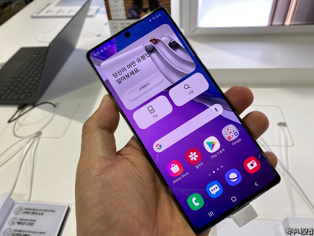 요 며칠 전에 코스트코에 가니 갤럭시 노트 20 시리즈(기본 모델과 울트라 모델)가 전시되어 있었다. 국내 시장에 나온지는 좀 되었지만 그래도 난 직접 보지를 못했기 때문에(언팩 행사로만 봤다) 전시품이고 짧은 시간만 볼 수 있었지만 간단히 살펴봤다.