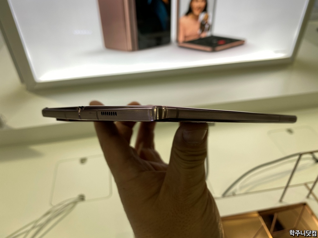 물론 내부에 힌지 부분도 다르고 UTG(초박막유리)를 사용한 것도 다르지만 접었을 때 접히는 부분이 100% 종이 접히듯 딱 접히는 구조는 아니고 어느정도 떠있을 수 밖에 없는 구조인데 이건 어쩔 수 없을 듯 싶다.