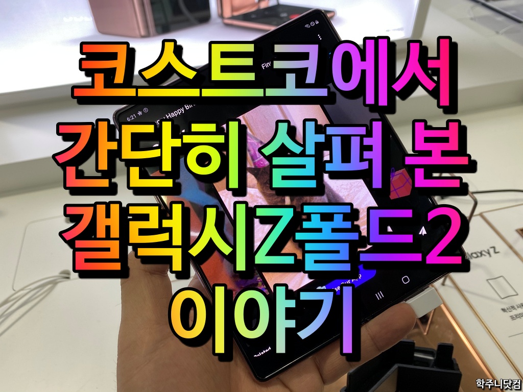 지난 포스트인 '코스트코에서 간단히 살펴 본 갤럭시노트 20 이야기'에 이어 이번에는 '코스트코에서 간단히 살펴 본 갤럭시Z 폴드2 이야기'를 해보려고 한다. 솔직히 이제는 나한테 리뷰 의뢰가 오지 않으니 그냥 근처 코스트코나 갤럭시 스튜디오에서 간단히 살펴보고 포스팅하는 '~~서 간단히 살펴 본 ~~' 시리즈를 만들어야 할 듯 싶다(-.-).