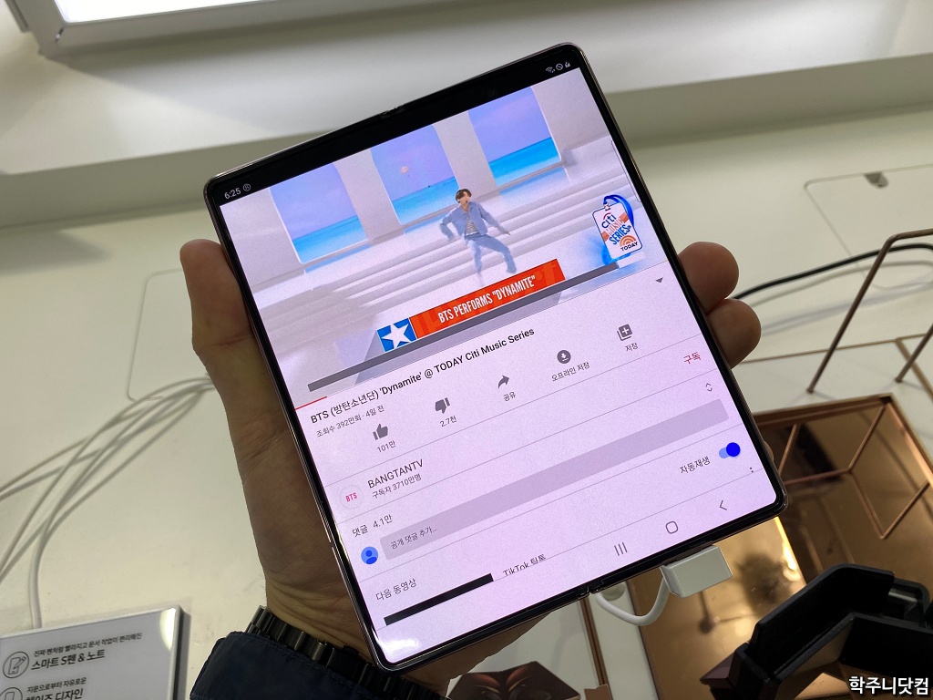 화질의 경우 내 느낌은 솔직히 폴드나 폴드2나 비슷하기는 했다. 그런데 폴드2에 적용된 OLED는 다이나믹 AMOLED 2X라고 하는데 120Hz 주사율을 제공한다고 한다. 그러다보니 120Hz의 주사율로 인한 동영상 재생 시 보여지는 부드러움이 다르다는 느낌은 조금은 받았다(고는 하지만 큰 차이를 못느꼈다. 내 눈이 안좋아서 그런 것일지도 모르겠다 -.-).