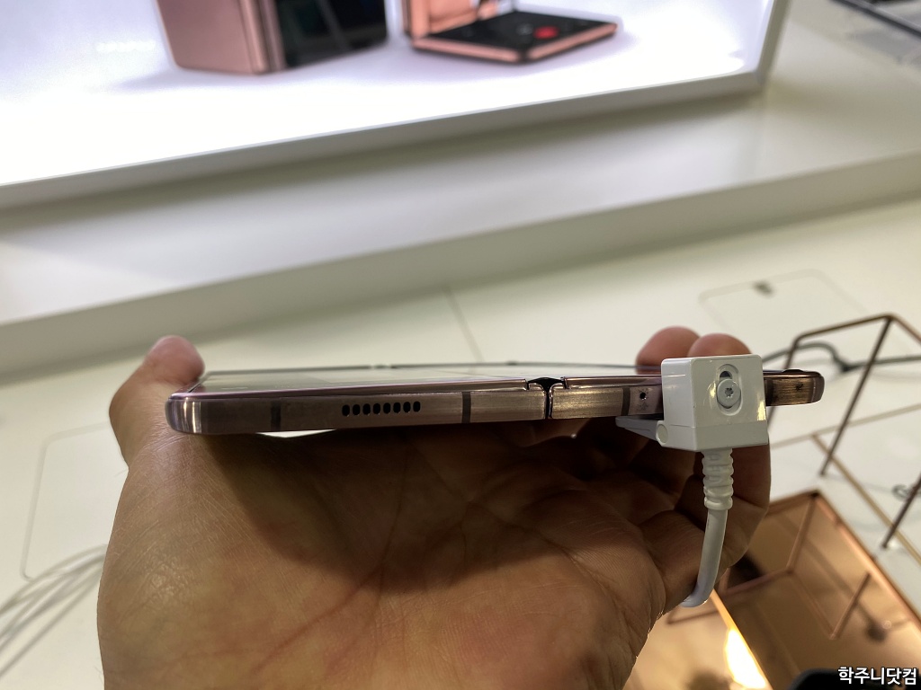 물론 내부에 힌지 부분도 다르고 UTG(초박막유리)를 사용한 것도 다르지만 접었을 때 접히는 부분이 100% 종이 접히듯 딱 접히는 구조는 아니고 어느정도 떠있을 수 밖에 없는 구조인데 이건 어쩔 수 없을 듯 싶다.