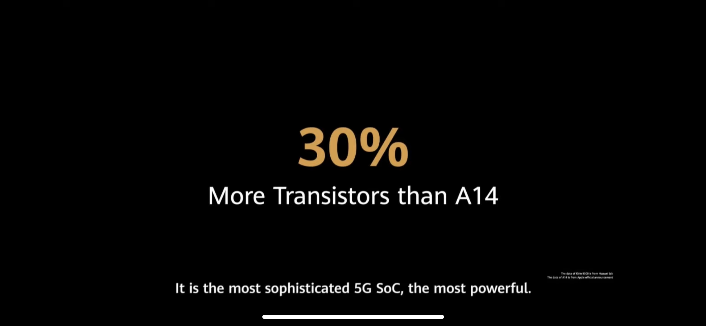 일단 기린 9000 칩셋은 5 나노 공정이 적용된 칩셋이다. 애플의 A14 바이오닉 칩셋도 5 나노 공정이 적용되었다.