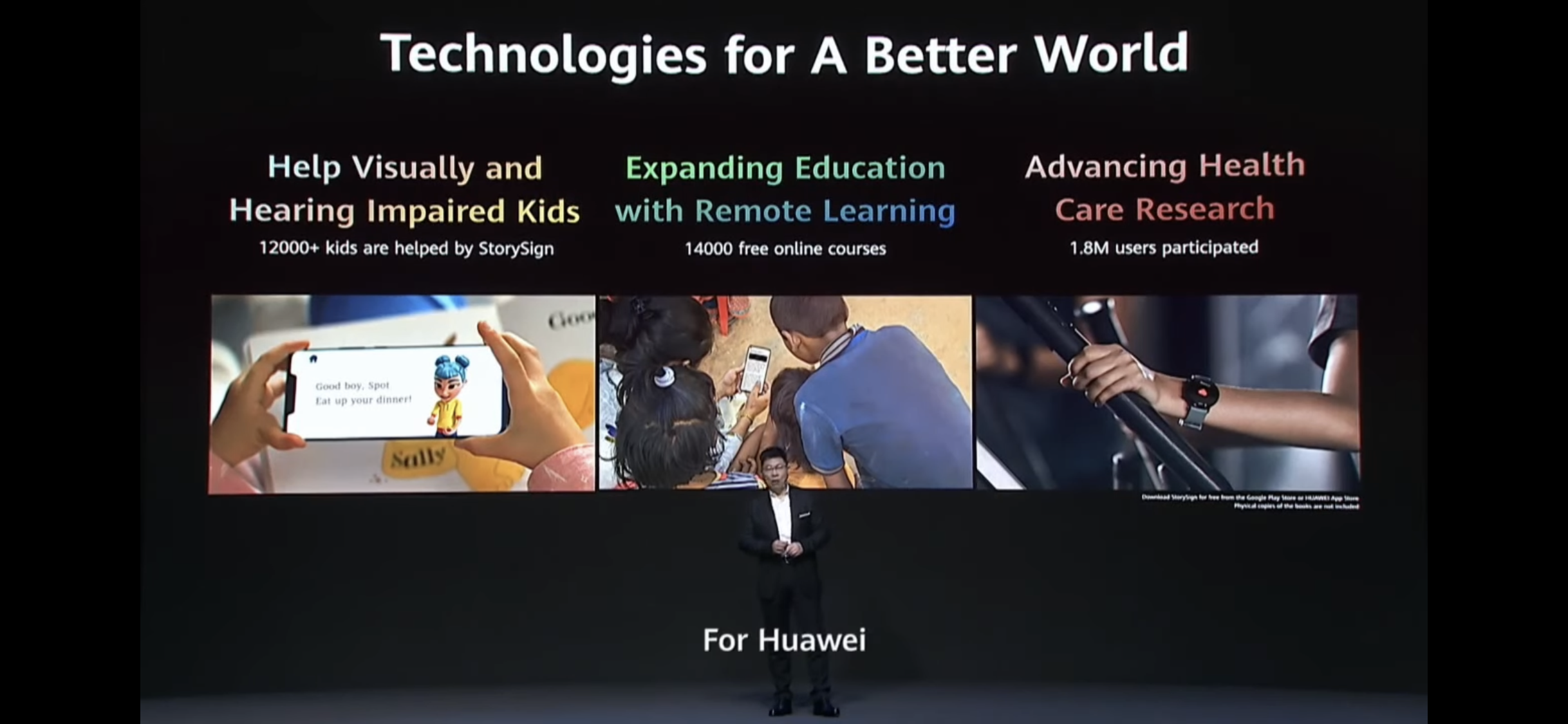 화웨이 제품이 뭐 12000명 이상의 애들에게 도움을 주고 교육적으로도 14000개의 무료 코스를 제공하고 있으며 180만명에게 의료적인 도움을 주고 있다는 얘기다.
