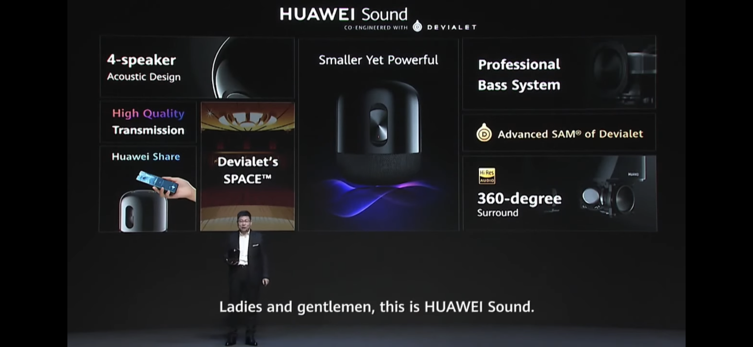 마지막으로 선보인 제품은 스마트 스피커이다. 화웨이는 화웨이 사운드라는 스마트 스피커 시리즈를 선보이고 있는데 이번에는 화웨이 사운드와 화웨이 사운드 X를 선보였다.