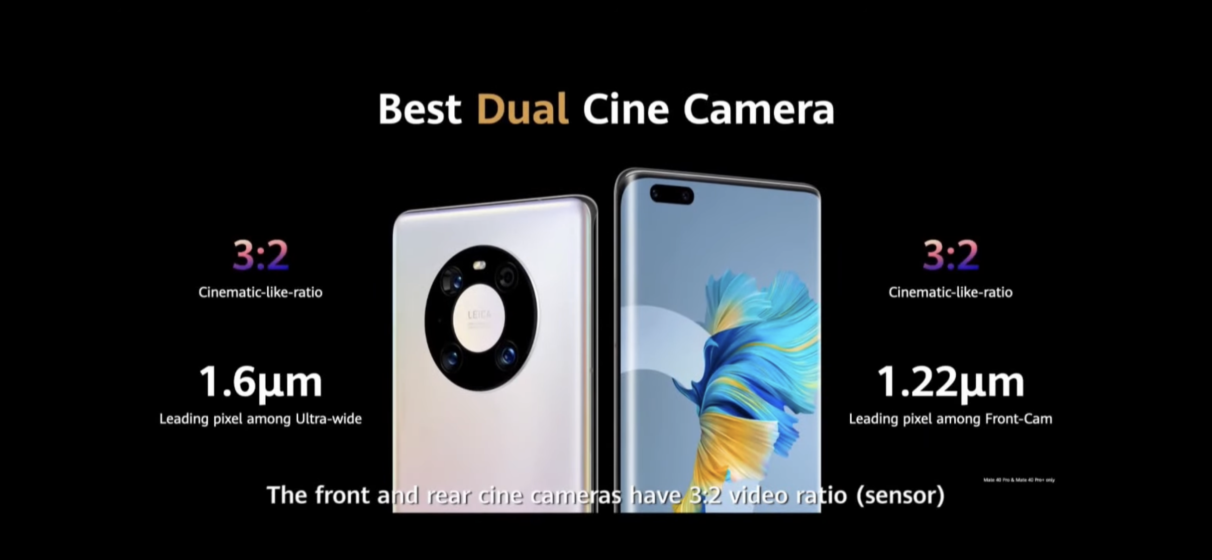 이제 카메라 얘기다. 스마트폰의 핵심 기능은 이제는 카메라라고 해도 과언이 아니다. 화웨이 역시 메이트 40 시리즈 얘기를 하면서 카메라 부분에 많은 얘기를 했다. 먼저 메이트 40과 메이트 40 프로에 대한 부분이다.