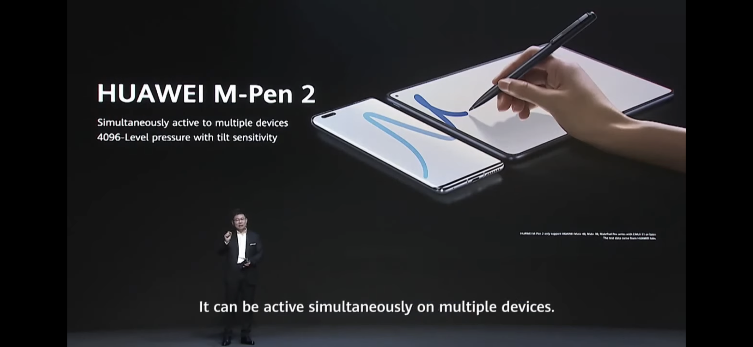 스마트펜도 소개되었는데 M-펜 2가 나왔다. 메이트 40 시리즈와 화웨이 태블릿에 함께 사용할 수 있으며 자연스럽게 연결해서 쓸 수 있는 스마트펜이다.
