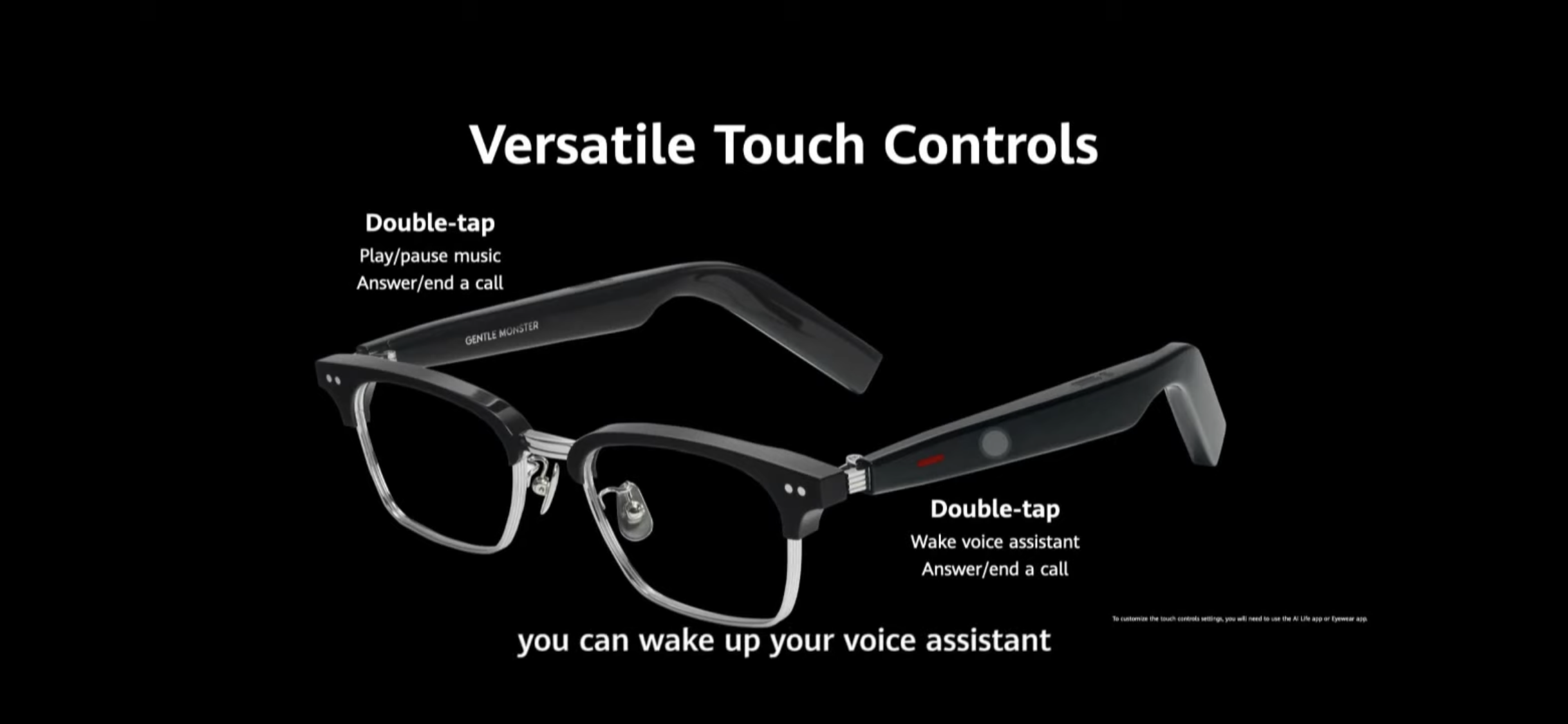 조작은 안경태의 넓은 부분에서 터치와 스와이핑으로 한다고 한다. 왼쪽 안경태와 오른쪽 안경태에 더블탭을 하면 각기 다른 조작이 일어난다고 한다. 음악을 켜고 끄거나 통화를 받거나 끄거나 하는 것은 왼쪽, 인공지는 비서를 호출하는 것은 오른쪽 안경태를 더블탭을 하면 된다고 한다.