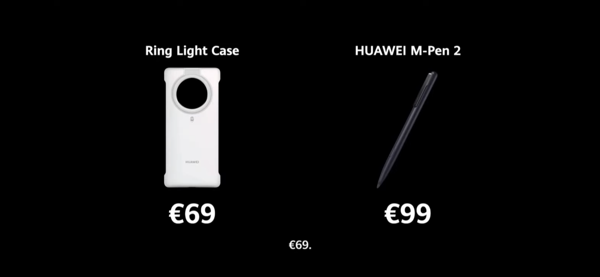 메이트 40 시리즈의 악세서리들 가격도 공개되었는데 링 조명 케이스는 69 유로로 한국 돈으로 9만원 정도가 되고 M-펜 2의 경우 99 유로로 한국 돈으로 대략 13만원 정도가 된다.